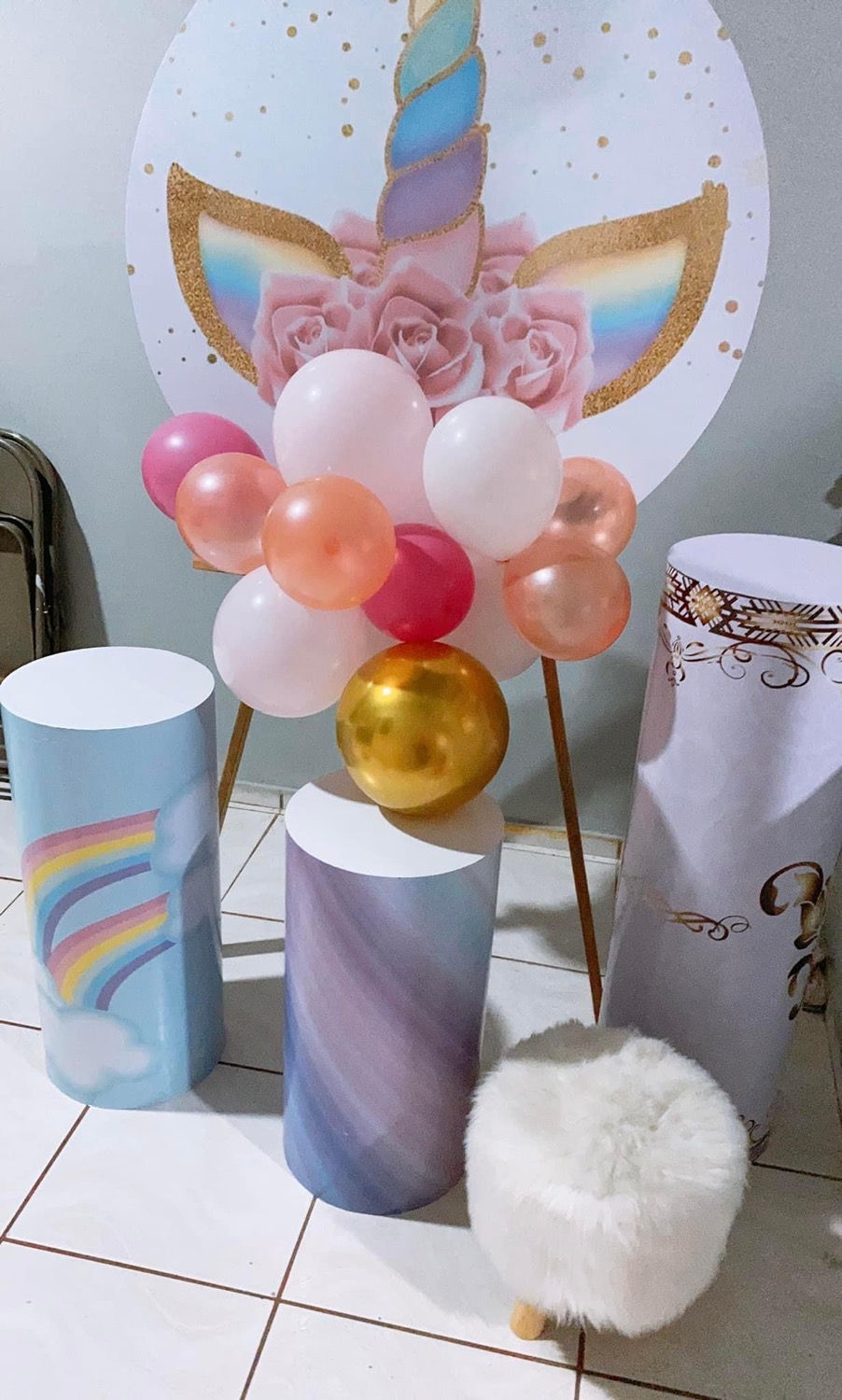Alquiler de cilindros de madera en escala de mayor a menor, backdrop de 40 pulgadas de circunferencia en material pvc decorados en vinil a tu elección temática. Cajas baby/love/boy o nombre de 4 letras de material acrílico y pvc.